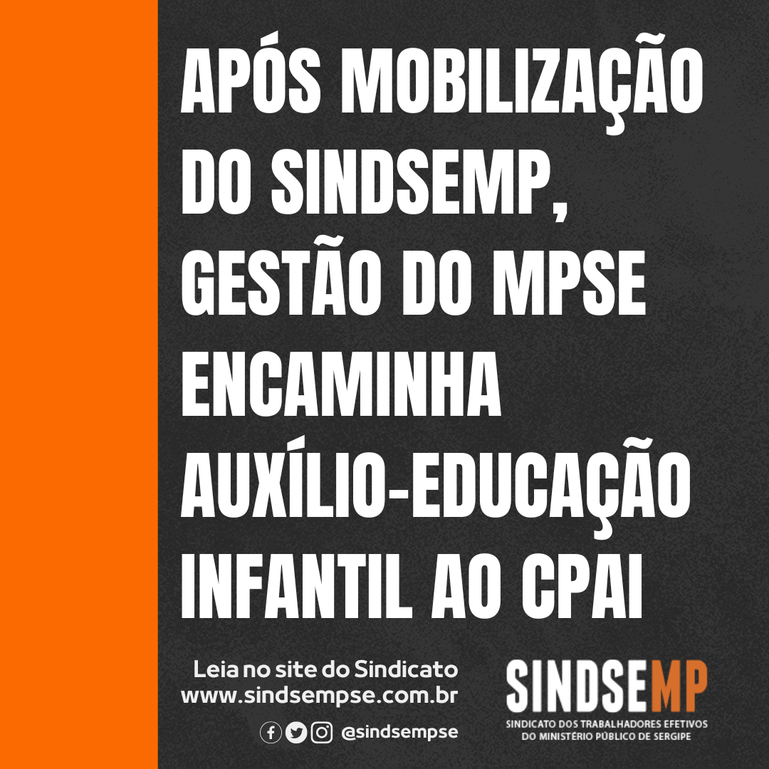 Em ofício remetido ao SINDSEMP na terça-feira, 8, o Procurador-Geral de Justiça (PGJ), Manoel Cabral Machado Neto, comunicou que foi encaminhada à Comissão Permanente de Assuntos Institucionais (CPAI) uma minuta de projeto de lei que estabelece a criação do auxílio-educação infantil. este está na pauta dos servidores e consiste no pagamento de um benefício em favor dos servidores efetivos com dependentes de até cinco anos, no valor atual de R$ 221,92