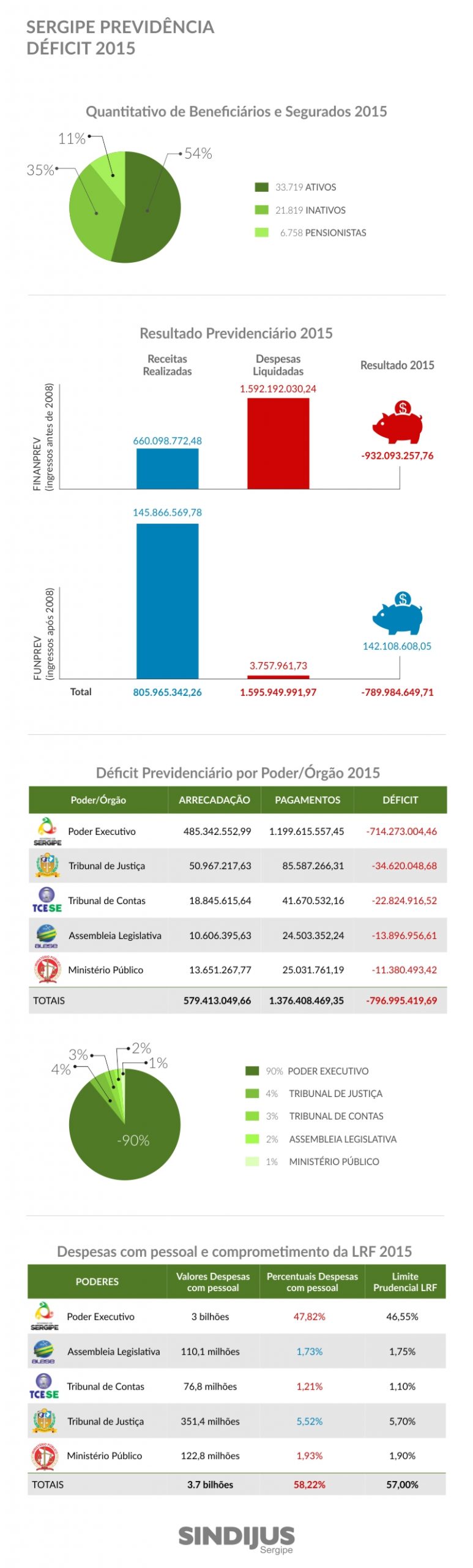 De acordo com dados do Relatório de Gestão de 2015, disponível no site do Sergipe Previdência, o déficit correspondente ao Ministério Público no ano passado corresponde a R$ 11.380.493,42 milhões, ou seja, 1% do déficit total que é de R$ 796.995.419,69. O Poder Executivo, por exemplo, detém a maior parte dessa dívida, chegando a 90%, o equivalente a R$ 714.273.004,46.