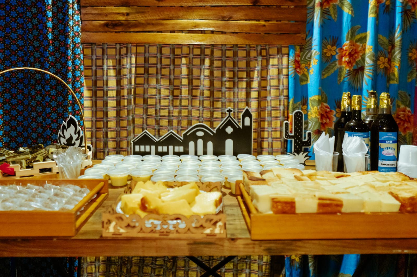 E teve comida boa, viu?! O forró esquentou a pista de dança, mas a barriga também ficou satisfeita. Teve pamonha, mungunzá, canjica, bolo e todas as delícias típicas juninas que a gente ama. E, pra refrescar, não podia faltar a boa e velha cervejinha gelada e os drinks da moda.