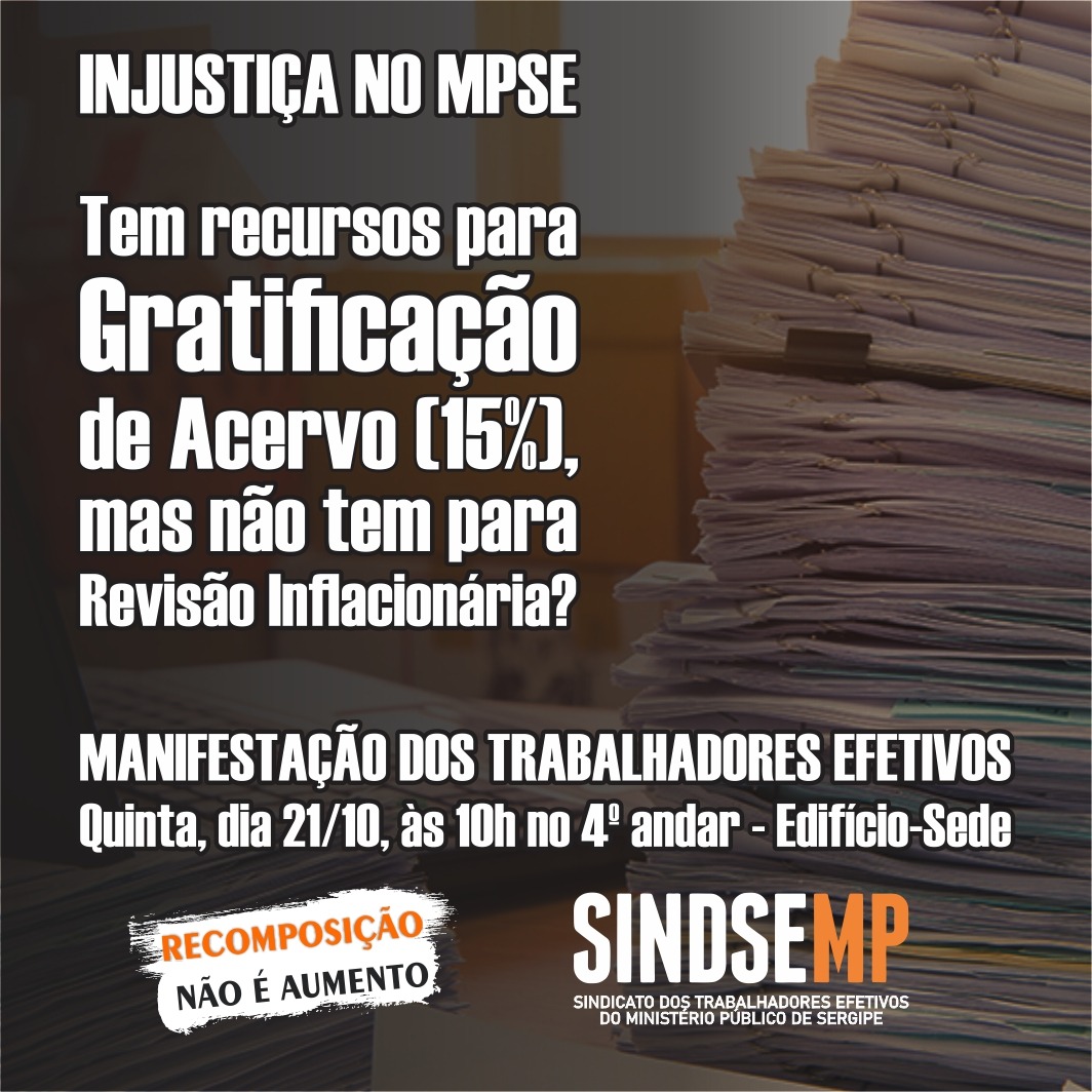 O SINDSEMP-SE repudia de forma enfática a concessão dessa gratificação em meio a sucessivas e infundadas recusas para concessão de revisão inflacionária aos Trabalhadores Efetivos – um direito constitucional que vem sendo negado no órgão que deveria dar o exemplo ao se colocar como guardião da ordem jurídica em Sergipe.