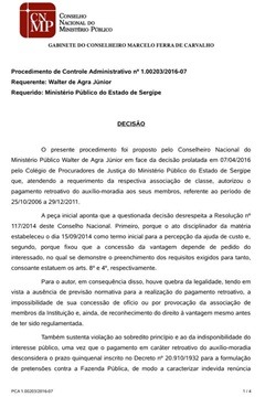 O Conselho Nacional do Ministério Público proferiu decisão liminar suspendendo a decisão do Colégio de Procuradores do MPSE que deferiu o pagamento retroativo de auxilio moradia aos Promotores e Procuradores, desde 2006.