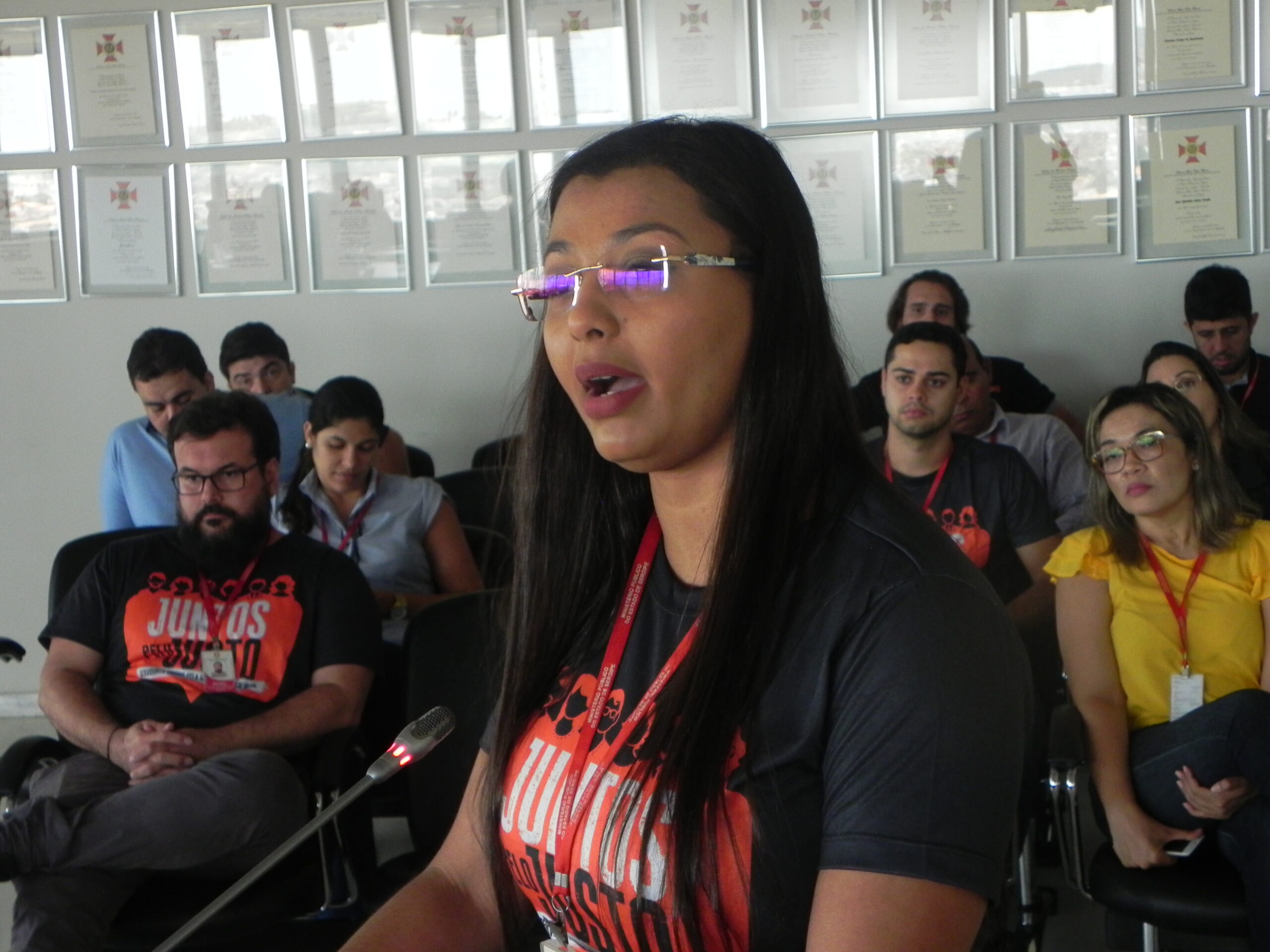 Na ocasião, Fernanda pontuou as principais pautas elencadas como fundamentais para a valorização dos trabalhadores da casa, além de revelar os entraves enfrentados e o sentimento de desprestígio diante da administração do órgão percebido pela base.