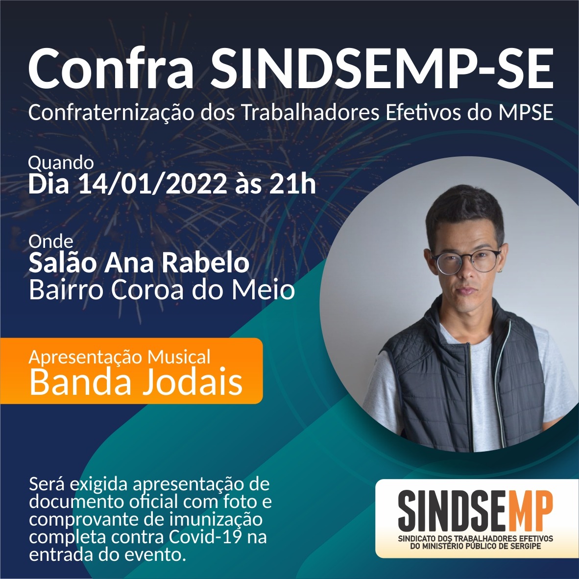 O evento é destinado a filiados e filiadas do SINDSEMP-SE, além de convidados, e será necessário apresentar ciclo vacinal completo para entrar na confraternização, que terá como atração a banda Jodais.