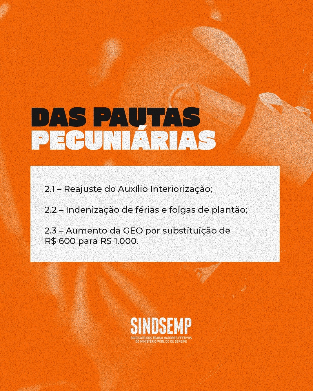 Nesta sexta, dia 5, haverá a primeira rodada de negociação entre os Trabalhadores Efetivos do Ministério Público de Sergipe (MPSE) a gestão da instituição no ano de 2024. Será o momento de discutir sobre a pauta de reinvindicações dos servidores. Mas você sabe pelo que os servidores do MPSE estão lutando!?