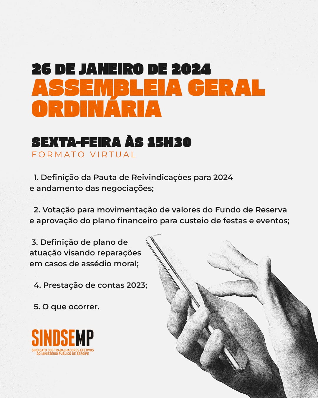 A construção coletiva da Pauta de Reinvindicações 2024 é um instrumento valioso na busca por uma luta unificada e representativa. Através da luta unificada, somos mais fortes e cada voz conta na construção do futuro dos Trabalhadores Efetivos do MPSE!