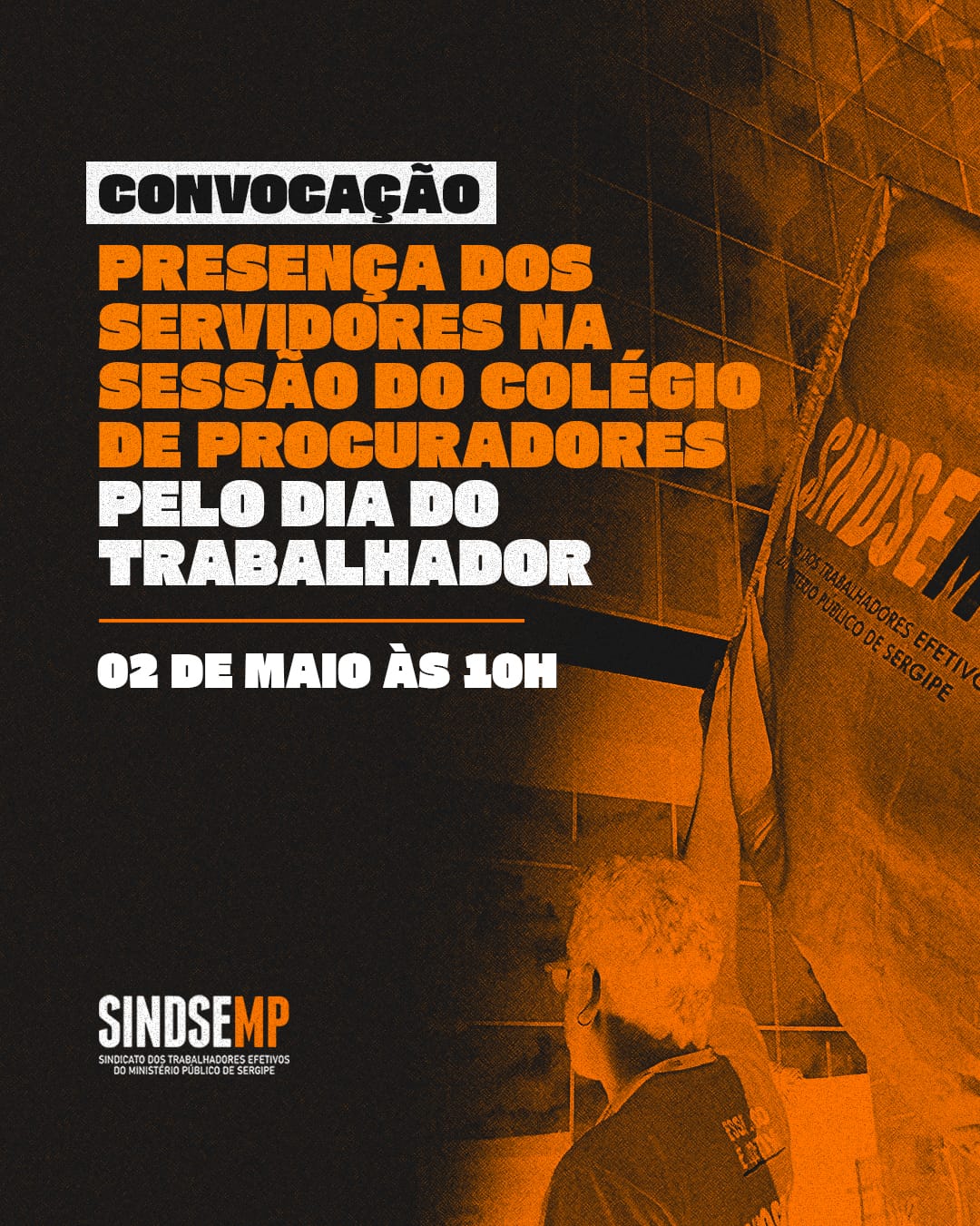 O SINDSEMP convoca todos servidores e servidoras a comparecerem na próxima sessão do Colégio de Procuradores de Justiça (CPJ) nesta quinta-feira, dia 2 de maio, às 10h, em resposta direta à decisão do Procurador-Geral de Justiça (PGJ) que negou nosso pedido para uma fala em alusão ao Dia do Trabalhador.
