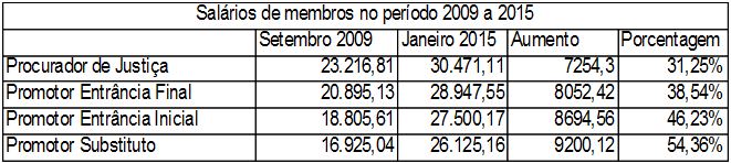 Nesse sentido, vê-se que os subsídios dos Membros do MPSE aumentaram consideravelmente nesse mesmo período (54,36% de aumento, no caso de Promotor de Justiça Substituto, conforme tabela abaixo), além da implementação de três auxílios (saúde, alimentação e moradia, este último no valor de R$ 4.377,00) e aumento/criação das gratificações por cargos de representação.