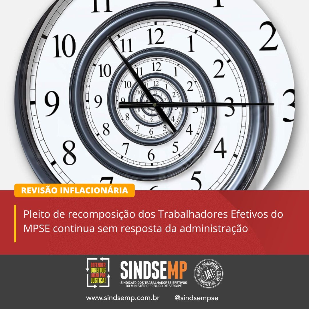 Passados 25 dias desde a reunião com a administração do Ministério Público de Sergipe (MPSE) com a representação do SINDSEMP-SE, a categoria ainda não viu uma resposta ao pleito de recomposição inflacionária dos Trabalhadores Efetivos da instituição.