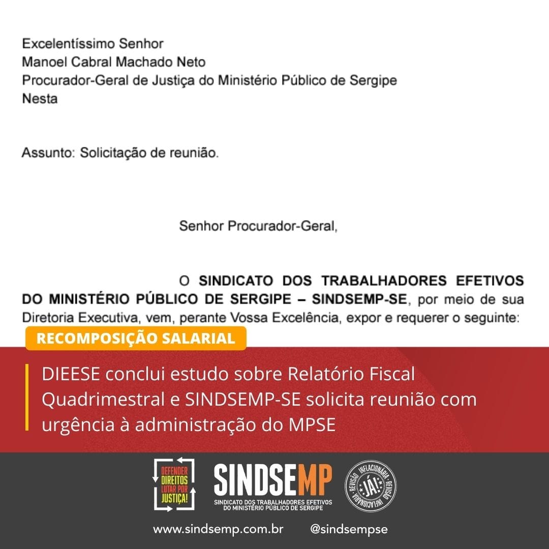 O SINDSEMP-SE protocolou na manhã de quinta, dia 1º de junho, ofício à ofício à administração do Ministério Público de Sergipe (MPSE) solicitando reunião (MPSE) solicitando reunião destacando a necessidade de dar urgência ao pleito.