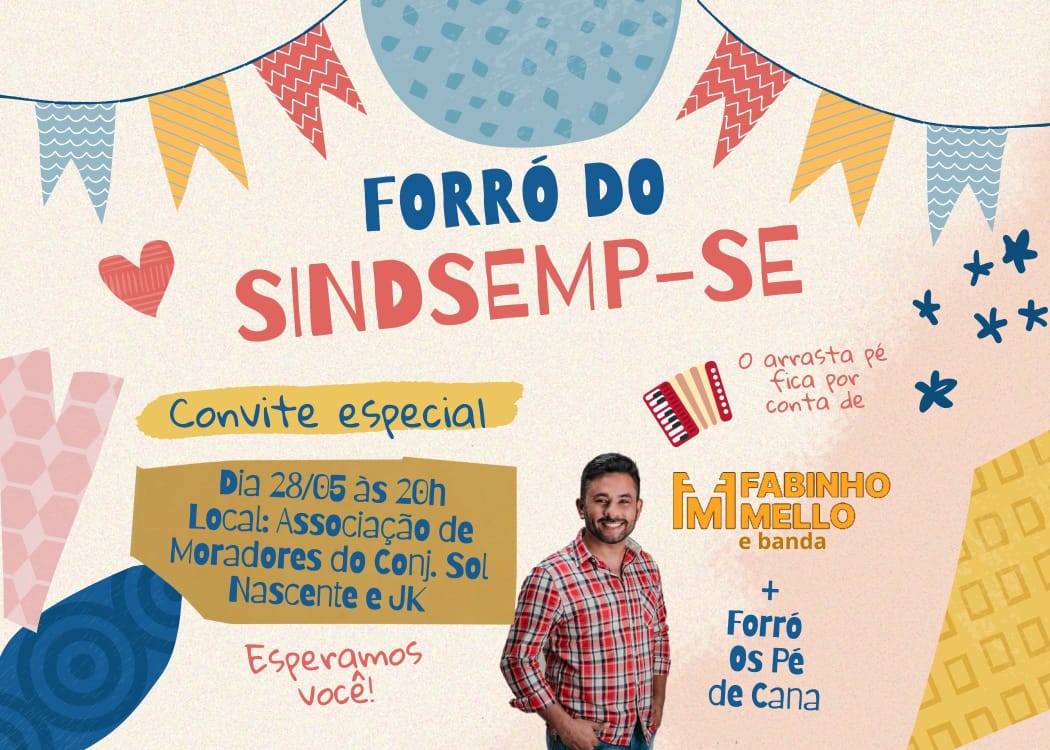 Tá chegando a hora da festa mais aguardada. O FORRÓ DO SINDSEMP-SE volta pra animar os festejos juninos dos Trabalhadores Efetivos do MPSE. Comidas típicas, confraternização com colegas e muito arrasta-pé pra voltarmos a curtir um arraial depois de um hiato de dois anos sem a festa.