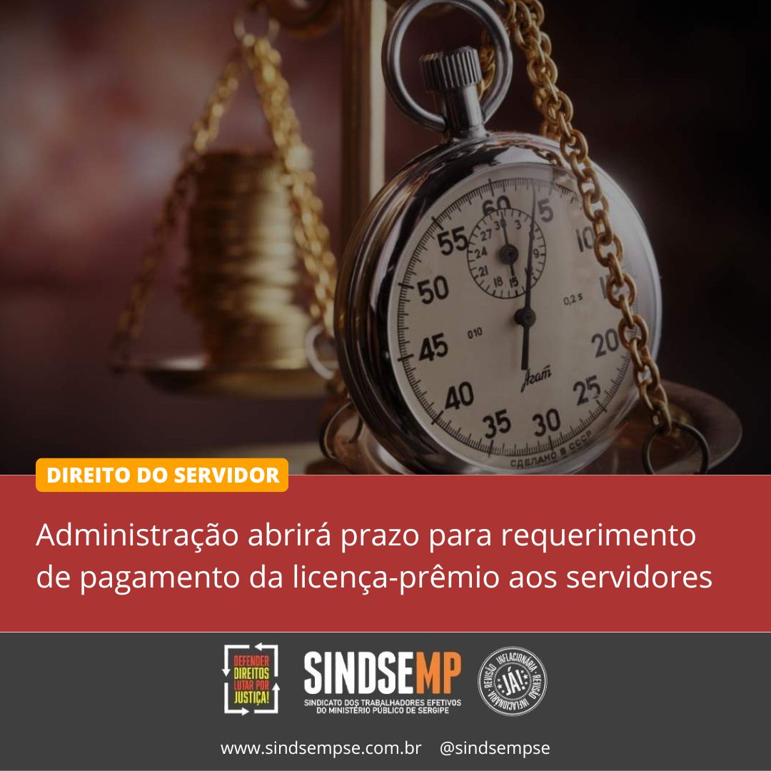 Atendendo a uma solicitação por parte do SINDSEMP-SE, a administração do Ministério Público de Sergipe encaminhou informações a respeito da conversão em pecúnia de licença-prêmio não gozada para os Trabalhadores Efetivos da instituição.