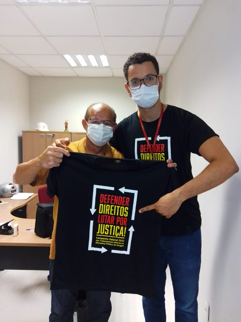 “É muito importante que os filiados peguem as camisas e usem no ambiente de trabalho, vamos publicizar nossa campanha e deixar clara a nossa indignação pela ausência de revisão inflacionária. Queremos nosso direito constitucional assegurado e uma remuneração justa”, destaca Izac Silva, integrante da Diretoria Executiva do SINDSEMP-SE.