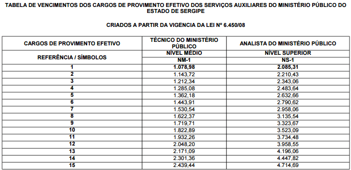 Nesta sexta-feira foi publicada no Portal do Servidor a nova tabela de vencimentos dos Servidores Efetivos do MPSE, em que consta o reajuste de 6,5% aprovado em março desse ano.