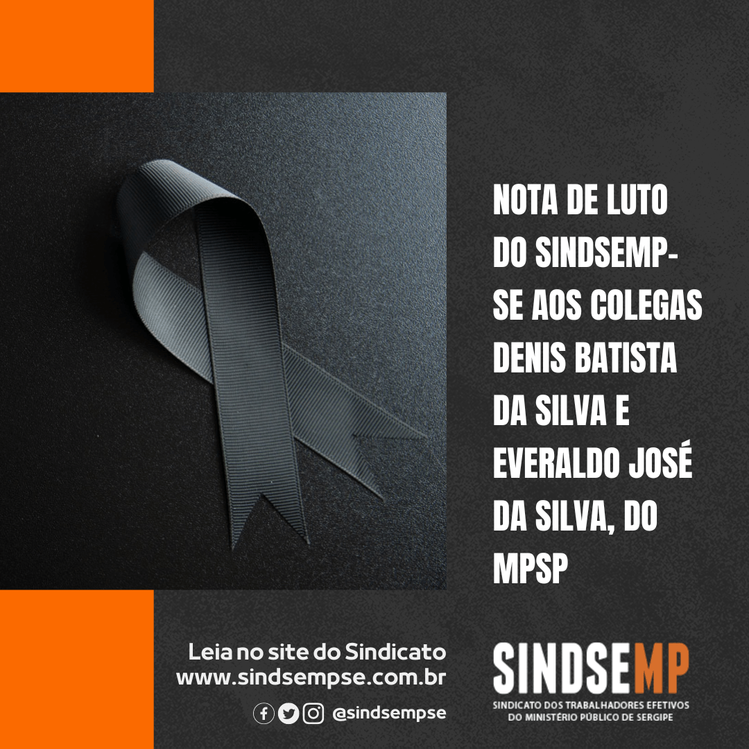 É com profunda tristeza que o Sindicato dos Servidores do Ministério Público de Sergipe (SINDSEMP-SE) manifesta pesar e solidariedade aos colegas servidores do Ministério Público de São Paulo (MPSP) diante da notícia na última semana do falecimento dos colegas Denis Batista da Silva e Everaldo José da Silva. Neste momento de dor, estendemos nossos mais sinceros sentimentos aos familiares e amigos, desejando força e conforto diante dessa irreparável perda.