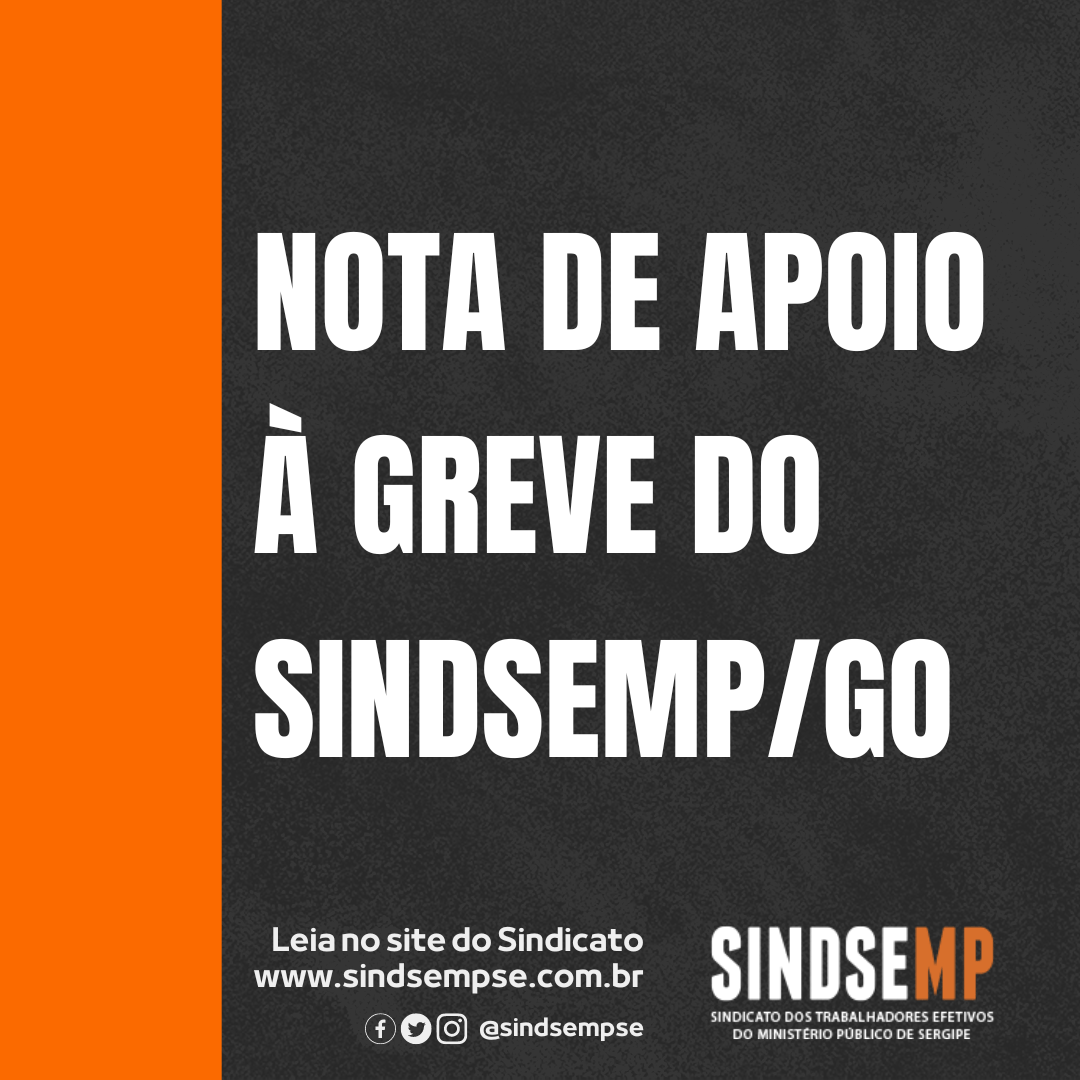O Sindicato dos Servidores do Ministério Público de Sergipe (SINDSEMP-SE) manifesta sua total solidariedade aos colegas servidores do Ministério Público do Estado de Goiás (MPGO) que, diante da falta de avanços nas negociações, decidiram pela deflagração da greve a partir de segunda, dia 15.