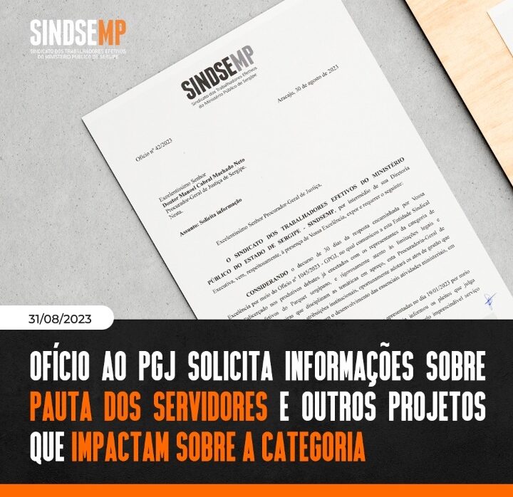 O SINDSEMP protocolou na quarta, dia 30, dois ofícios solicitando informações ao Procurador-Geral de Justiça (PGJ), Manoel Cabral Machado Neto. Os pedidos de informação feitos à gestão têm como objetivo fazer com que Os Trabalhadores Efetivos do Ministério Público de Sergipe (MPSE) tomem conhecimento de assuntos relevantes para a categoria.