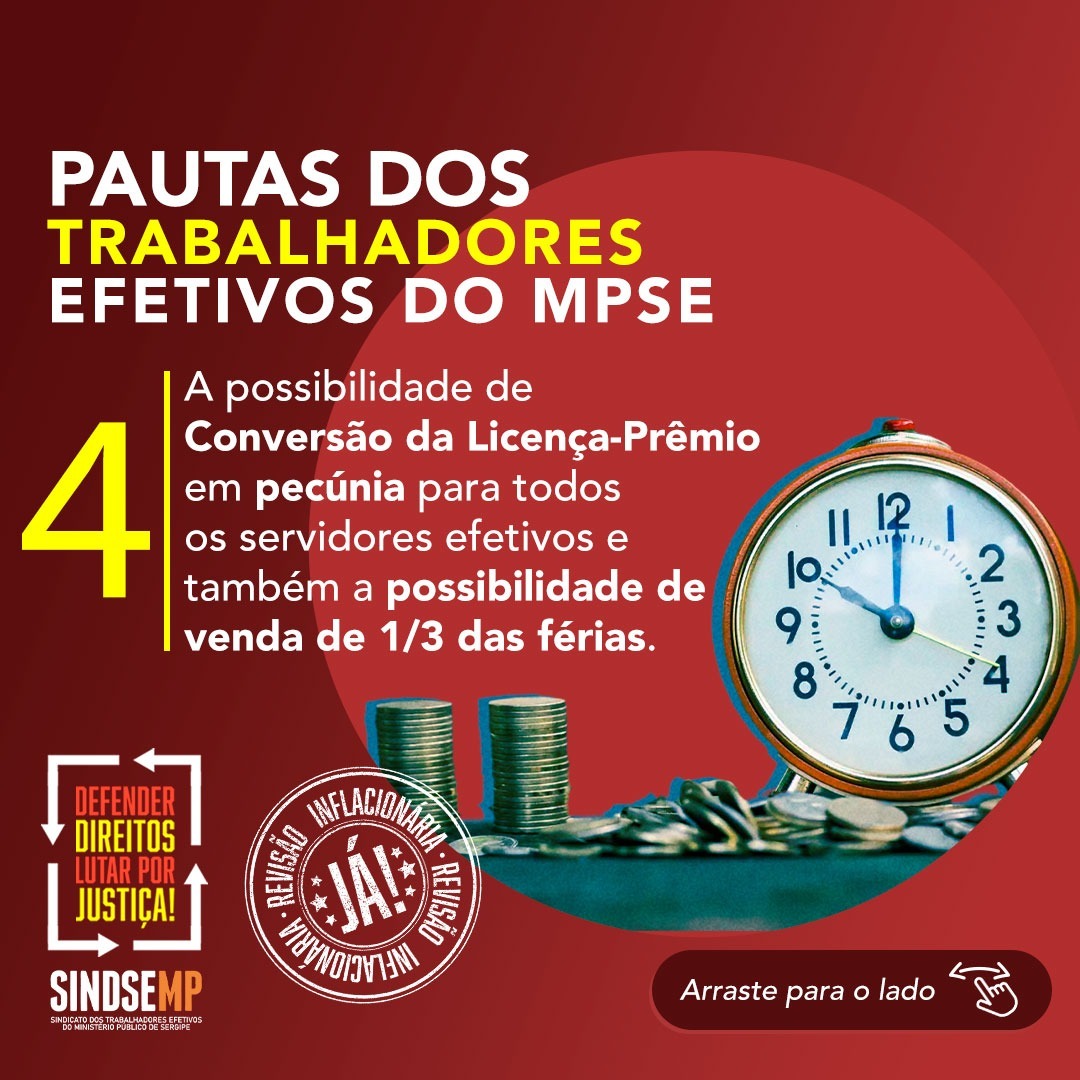 A conversão de Licença-Prêmio em pecúnia para todos os servidores e a possibilidade de venda de 1/3 de férias também estão entre as reivindicações que compõem a pauta da categoria.