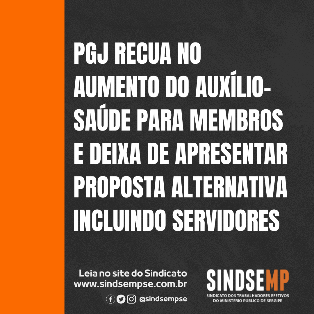 O Procurador-Geral de Justiça (PGJ), Manoel Cabral Machado Neto, decidiu arquivar momentaneamente o projeto de reforma do auxílio-saúde no Ministério Público de Sergipe (MPSE). O informe foi dado ao SINDSEMP-SE nessa segunda, dia 24, por meio de ofício em resposta à solicitação de informações sobre a medida e de reunião presencial com o gestor da instituição.