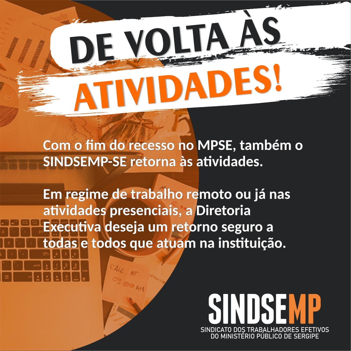 Notícias SINDSEMP-SE retorna à atividade com fim do recesso no MPSE 07/01/2021 Seguiremos atentos e ao lado da categoria contra o assédio moral, a favor da saúde e da vida durante a pandemia e na defesa dos direitos dos Trabalhadores Efetivos do MPSE. Bom retorno a todas e todos! DIRETORIA EXECUTIVA DO SINDSEMP-SE Compartilhar