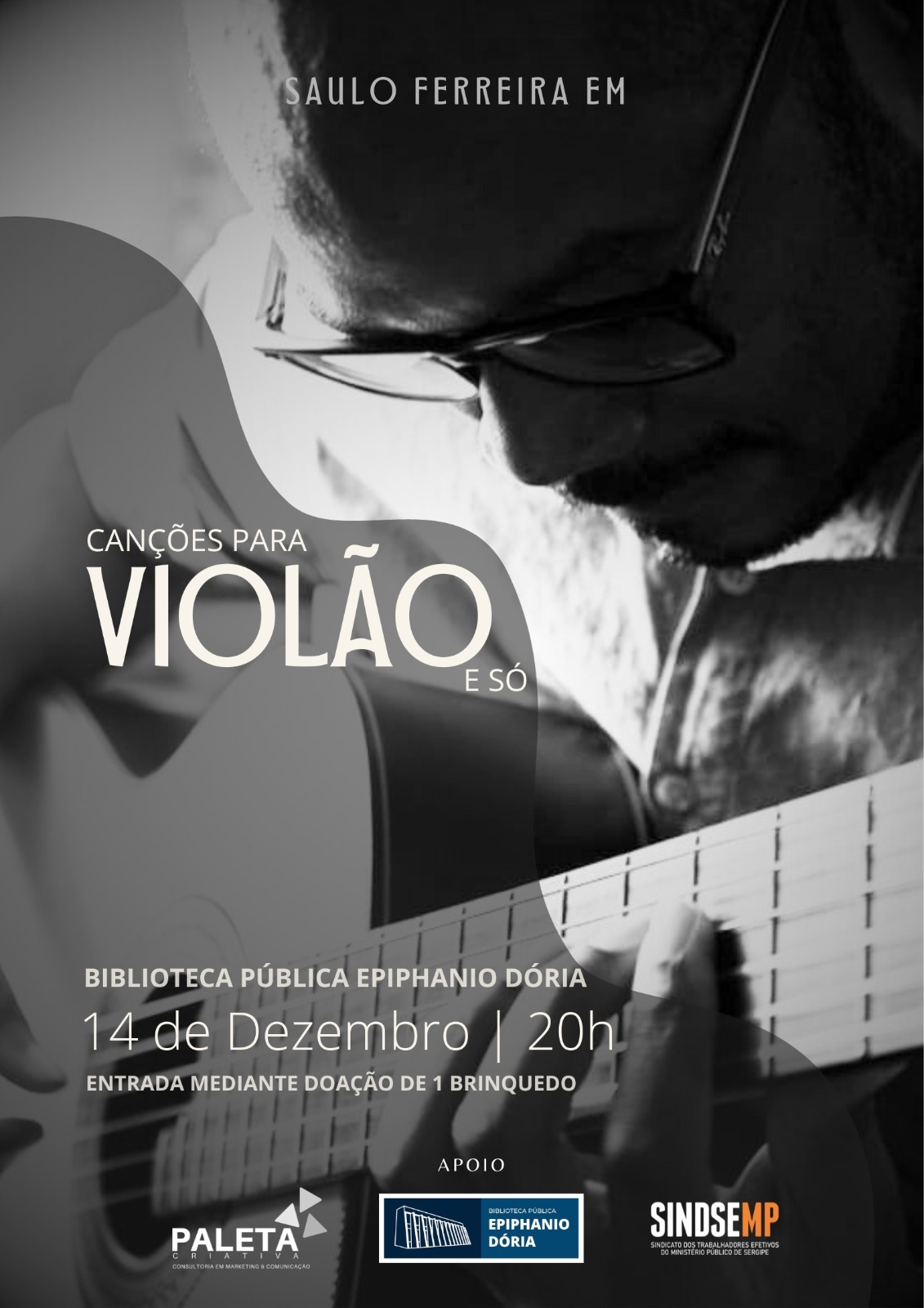A campanha foi pensada em conjunto com o premiado músico e professor Saulo Ferreira e será finalizada com um grande show do artista intitulado “Canções para violão e só”, no dia 14 de dezembro, às 20h, na Biblioteca Epiphanio Dória. O ingresso para o show será mediante entrega de um brinquedo para doação na entrada do evento.