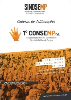 Conforme regimento do CONSEMP aprovado em Assembleia, já está disponibilizado no site o Caderno de Deliberações do 1º Congresso Estadual dos Servidores do Ministério Público de Sergipe – CONSEMP-SE.