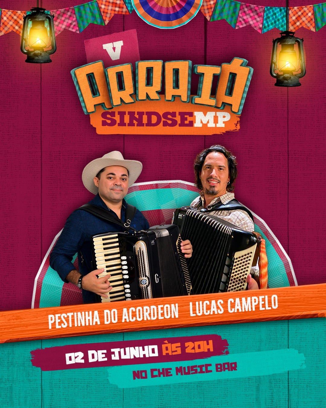 Prepara o coração, a fogueira vai esquentar e a animação vai tomar conta. No dia 2 de junho, a partir das 20h, o Che Music Bar será o palco dessa festança imperdível: o “Arraiá do SINDSEMP“. E olha só as atrações que vão fazer o arrasta-pé ser inesquecível: Lucas Campelo e Pestinha do Acordeon. Vai ser forró do bom, viu?!